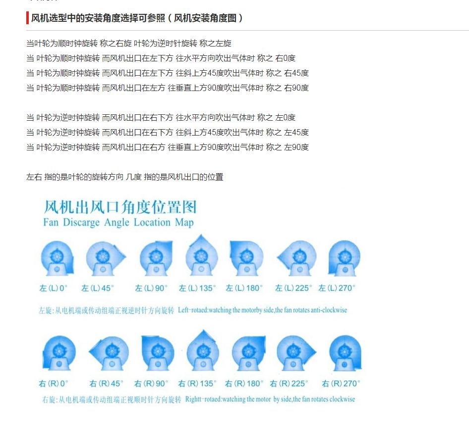 3.左旋和右旋是決定離心風(fēng)機(jī)電機(jī)是安裝在風(fēng)機(jī)的那一端,也是離心風(fēng)機(jī)風(fēng)輪的旋轉(zhuǎn)方向的。